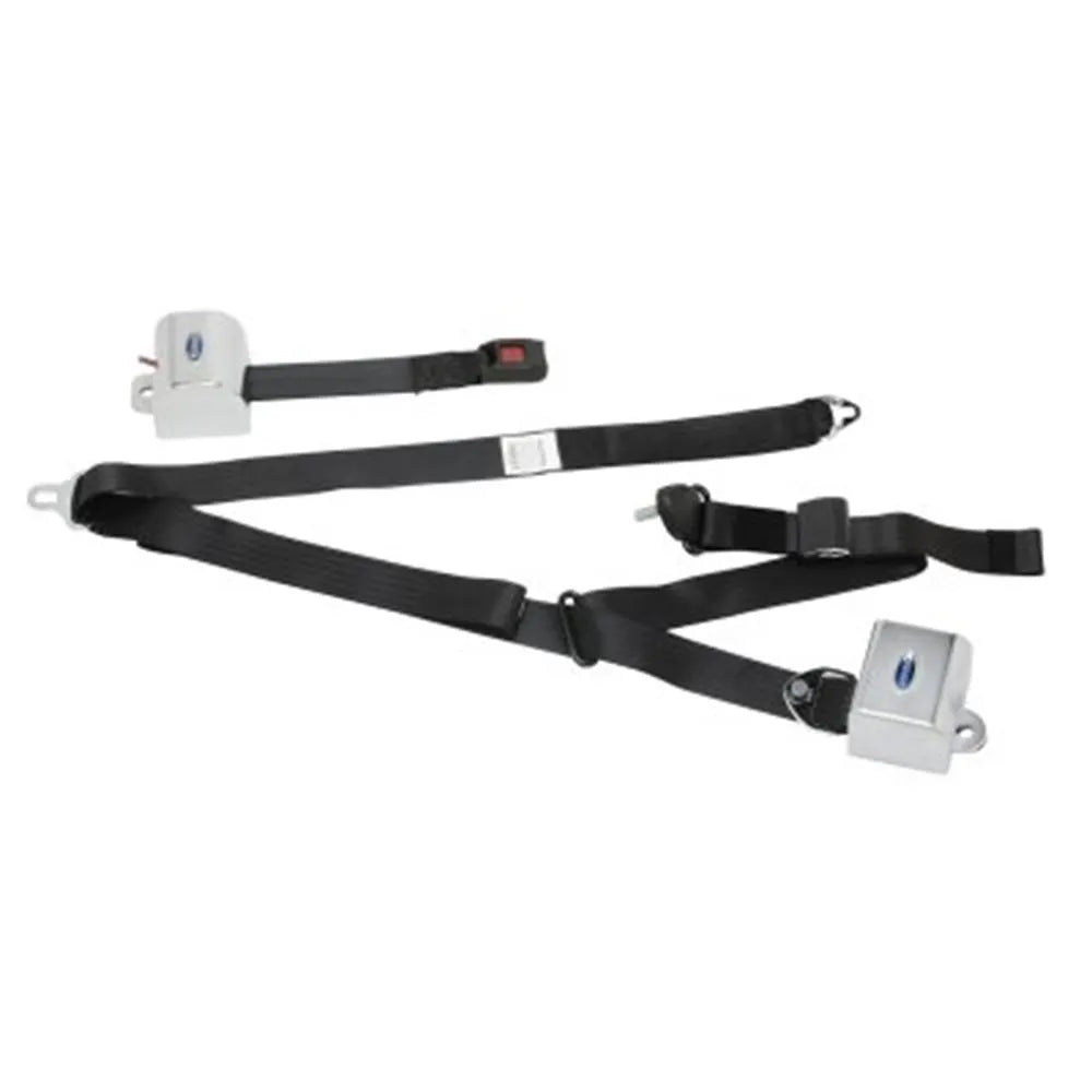 Retractable Shoulder & Lap Belt Combination with Retractable Female Half. Triangle fitting attaches to stud on lap belt.